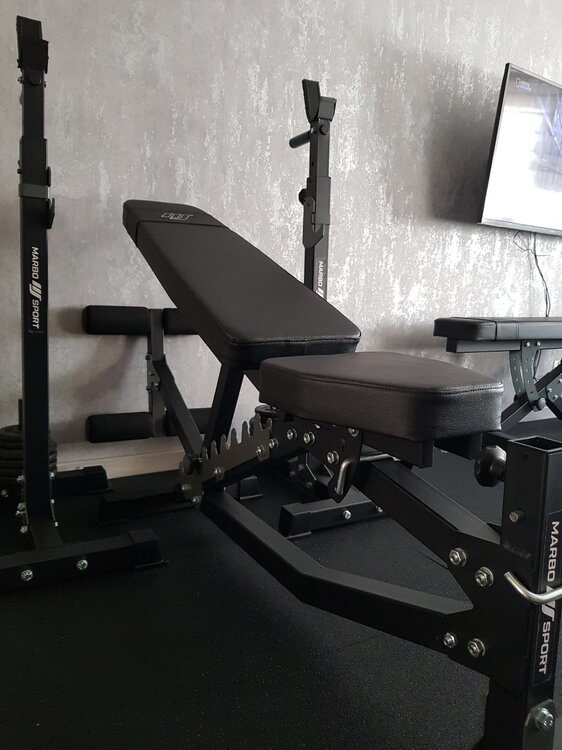 1. Wracam do tematu by powiedzieć że ostatecznie wpadły na warsztat Stojaki pod sztangę MS-S108 2.0 i ławka treningowa MS-L102 2.0 firmy Marbo Sport. Solidna konstrukcja, szerokie zakresy regulacji, praktyczne dodatki (jak drążki do dipów) i stabilność sprawiają, że jestem z nich bardzo zadowolony. Seria Semi-Pro 2.0 to udoskonalona wersja bestsellerów, prezentująca się profesjonalnie. Polecam wszystkim, którzy cenią sobie jakość i funkcjonalność w sprzęcie treningowym. SportowyTypżycia dzięki za sugestie, kierując się twoimi pierwszymi propozycjami ostatecznie wybrałem bardzo praktyczne stojaki które przydają się w wielu cwiczeniach Wielopoziomowe stojaki pod sztangę z asekuracją MS-S108 2.0 - Marbo Sport Dwustronnie regulowana ławka treningowa MS-L102 2.0 - Marbo Sport