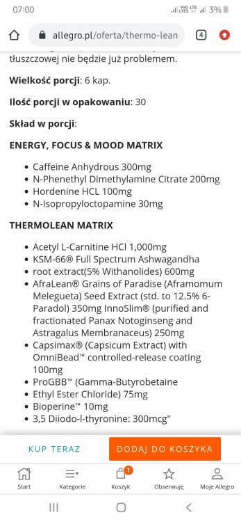 Po porównaniu składów jednak bardziej mnie przekonuje brawn thyro-lean tylko, że w sklepach są dostępne 2 wersje, która korzystniej wspomoże redukcje przy poziomie tkanki tłuszczowej mniej więcej 25%-30%- 2 925 odpowiedzi