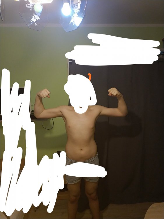Witam, mam na imię Radek, ćwiczę od pół roku chciałbym zamienić moją masę na mięśnie. Posiadam worek bokserski (20kg) i dziennie z 10minut spędzam na trenowaniu boksu. Odzywki: Białko - Whey protein 908 g x 2, Kreatyna - Monohydrat Realpharm 500g. Robię codziennie jeden trening który trwa od 20-40min (czasami godzinę). Zrobiłem parę zdjęć co i jak więc jeżeli ktoś bardziej doświadczony by mi pomógł to byłbym zachwycony. Między innymi jaką część mam trenować i w jaki sposób. Najbardziej zależy mi na: plecach, ramionach, brzuchu, tricepsach, bicepsach.Wstawiłbym zdjęcia jak wyglądałem pół roku temu ale ich nie posiadam :(. Aktualnie moje "postępy" wyglądają tak: